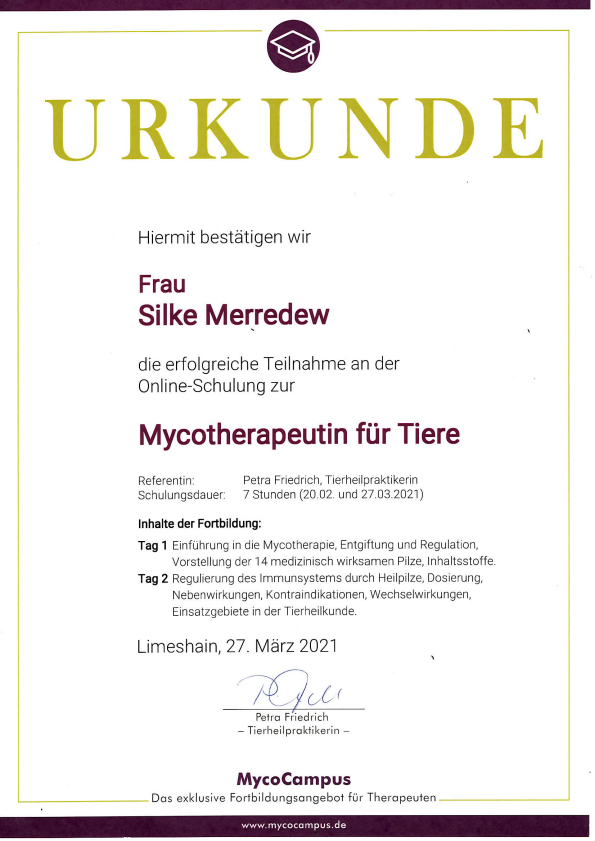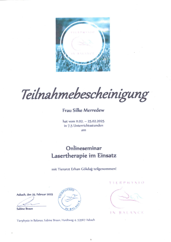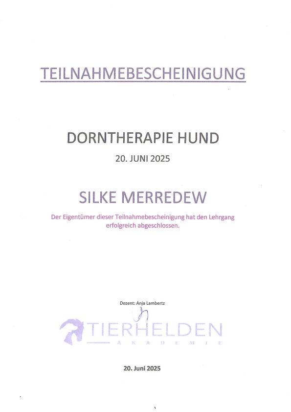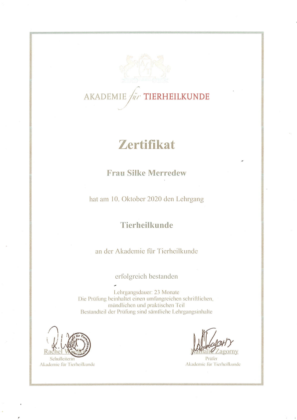 Als ausgebildete und zertifizierte Tierheilpraktikerin verstehe ich meine Arbeit als wertvolle Ergänzung – oder sanfte Alternative – zur klassischen schulmedizinischen Behandlung beim Tierarzt.
